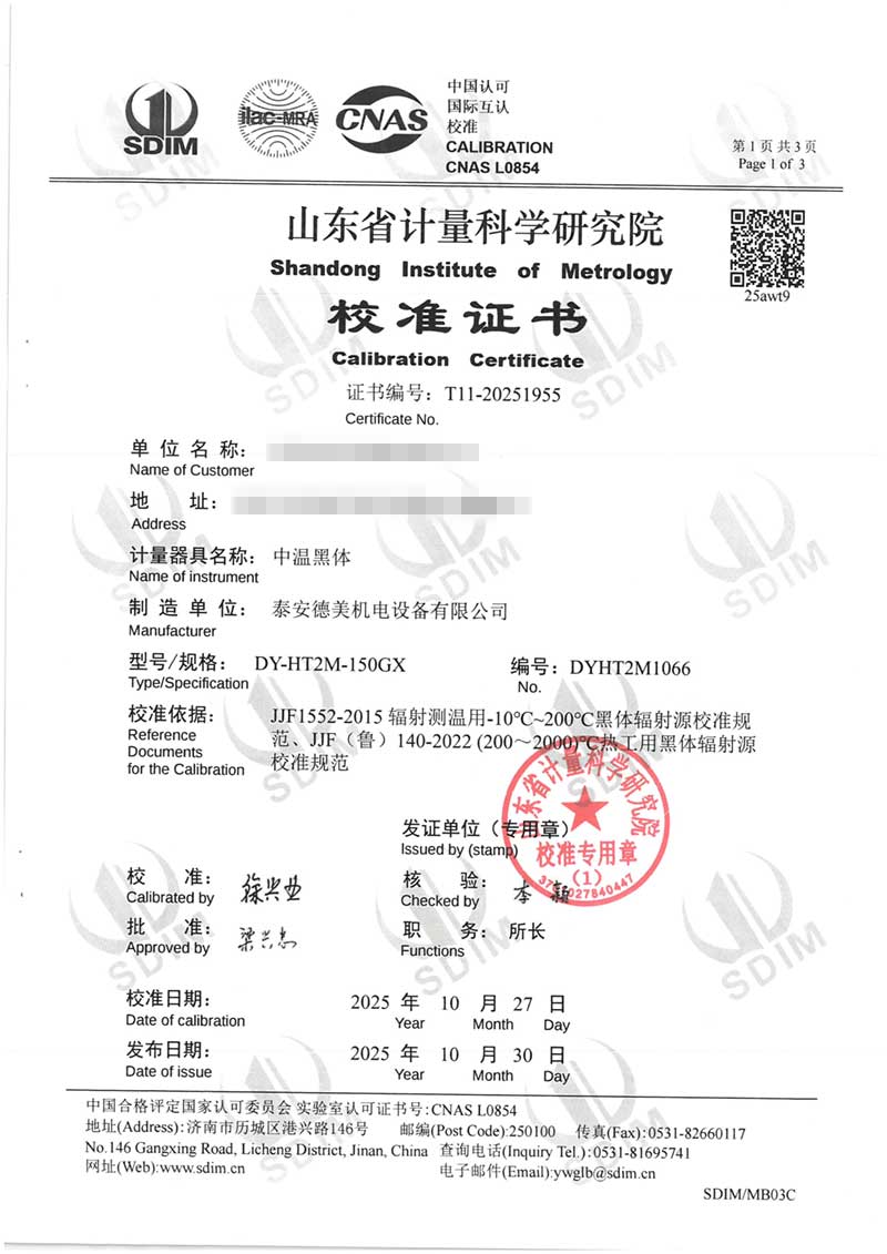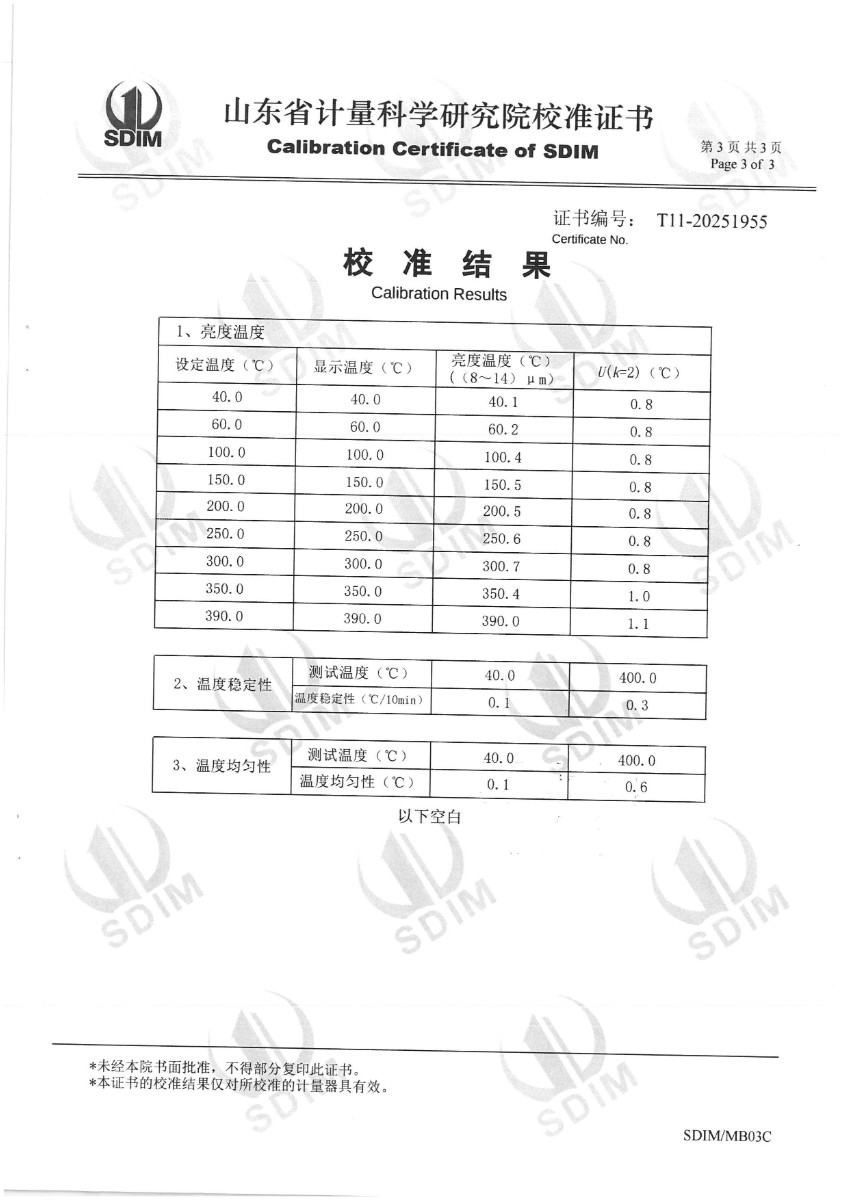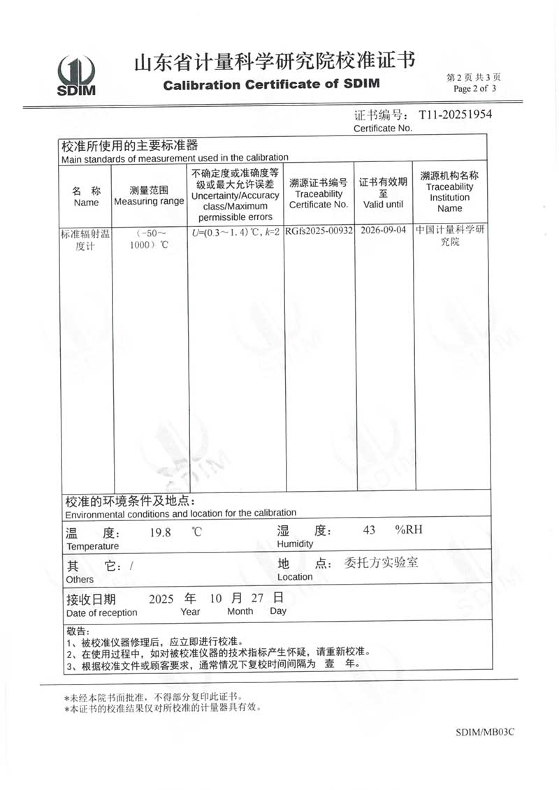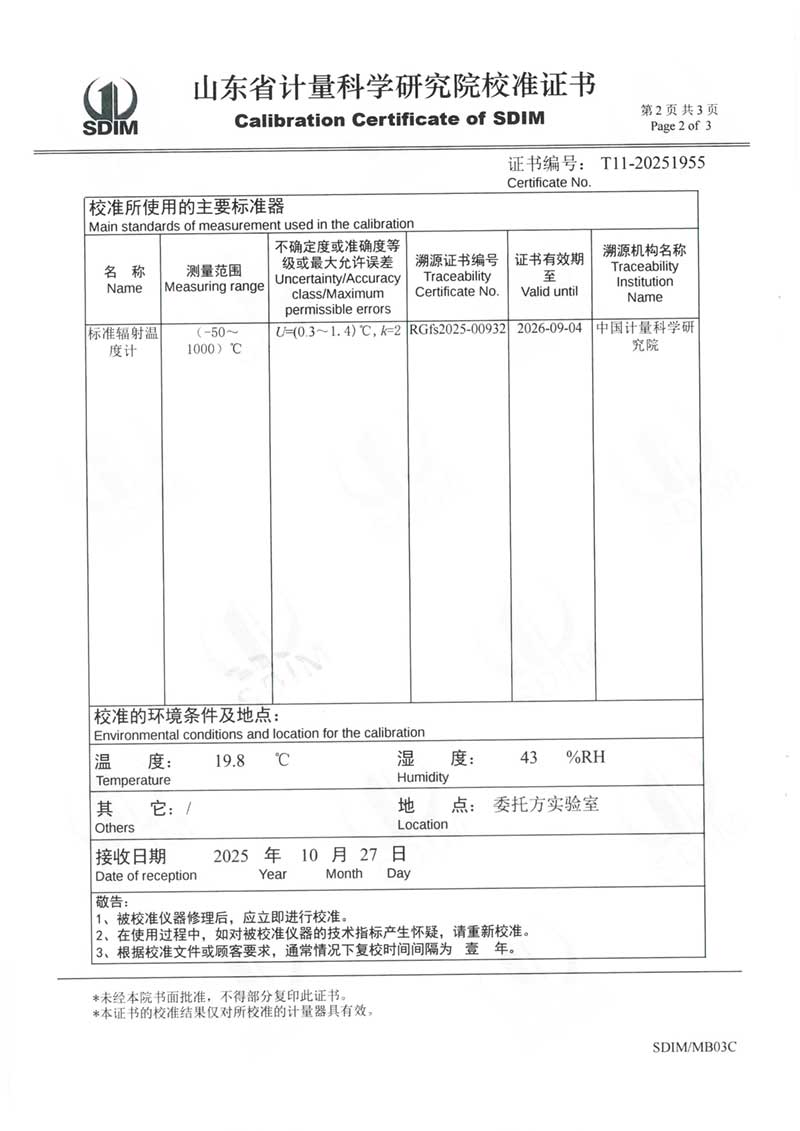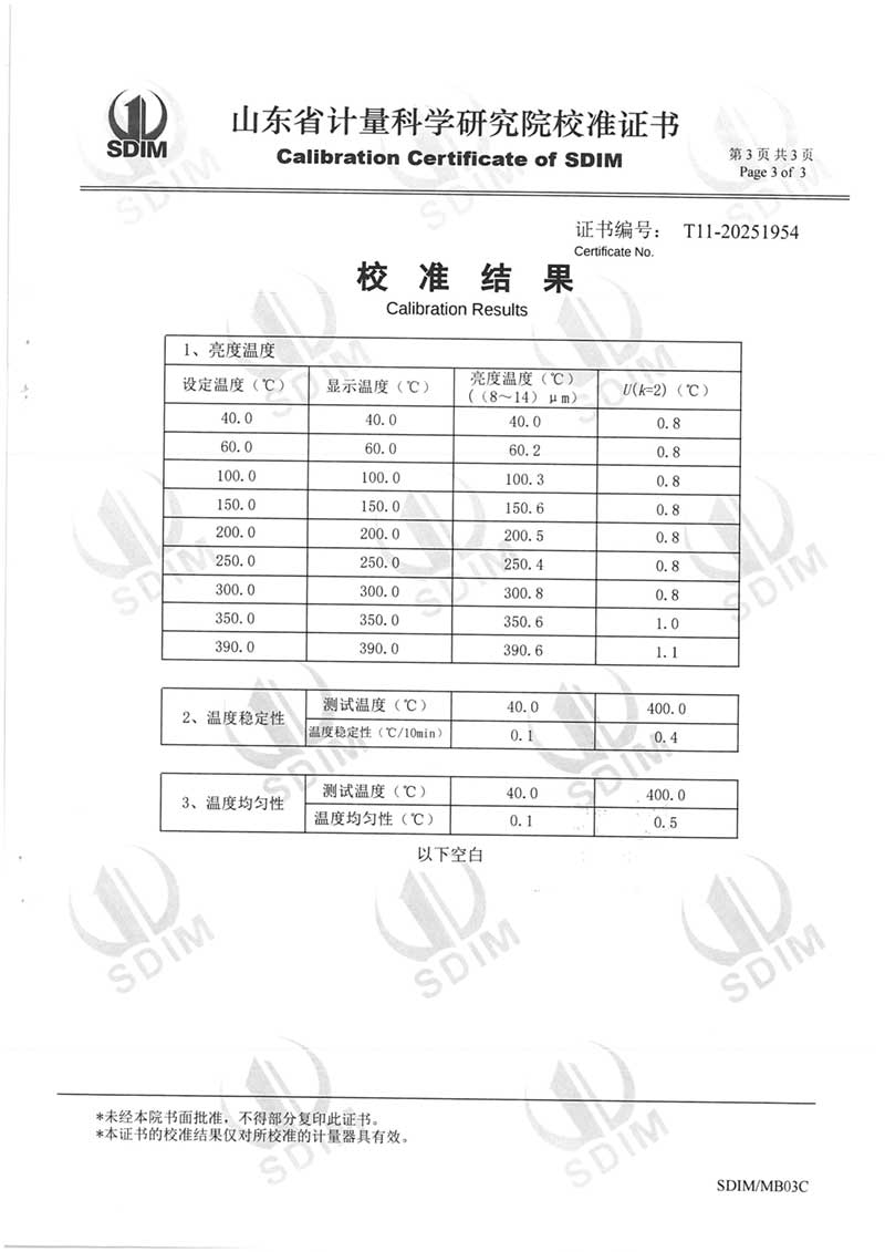 中溫黑體(室溫+5~400℃)校準證書 2025-11-5 本文被閱讀 808 次