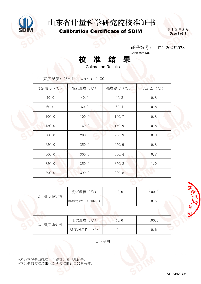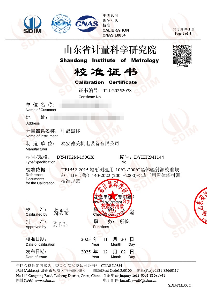 中溫黑體校準(zhǔn)證書 2025-12-4 本文被閱讀 543 次