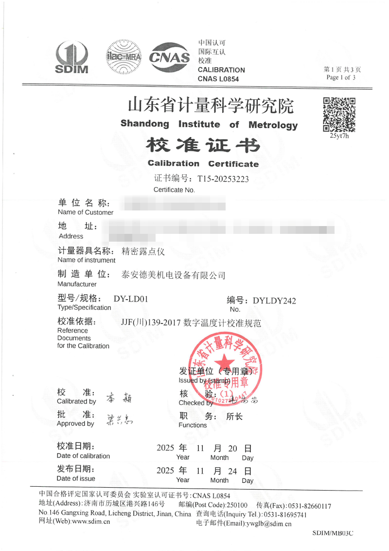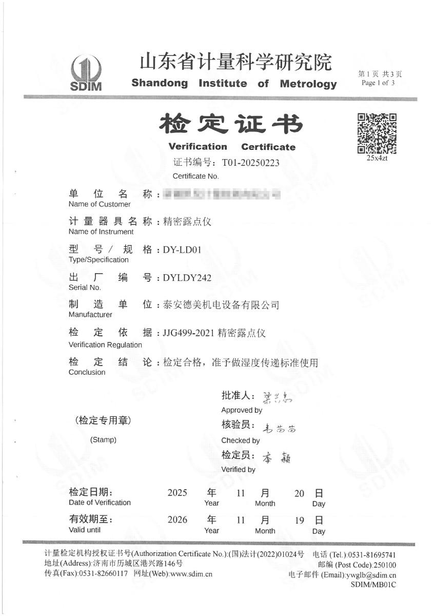 露點儀檢定、校準證書 2025-12-4 本文被閱讀 808 次