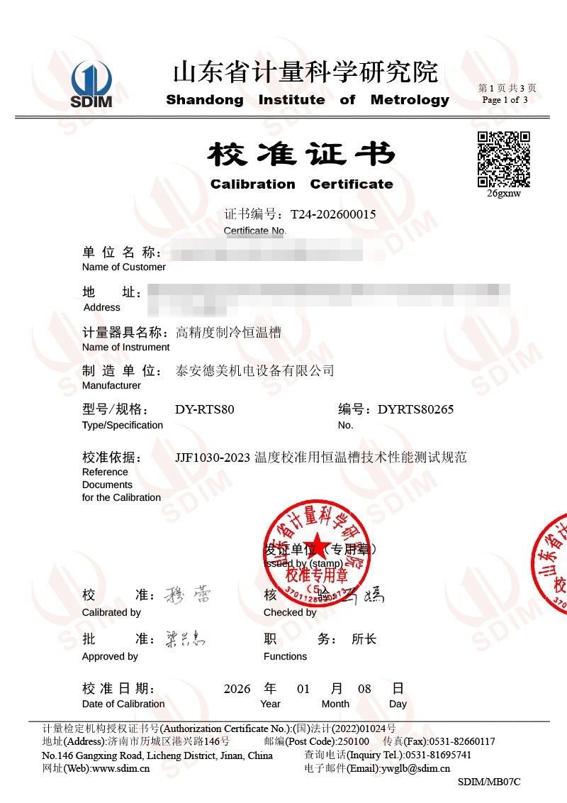 高精度制冷恒溫槽(-80~95℃)校準證書 2026-1-13 本文被閱讀 1044 次