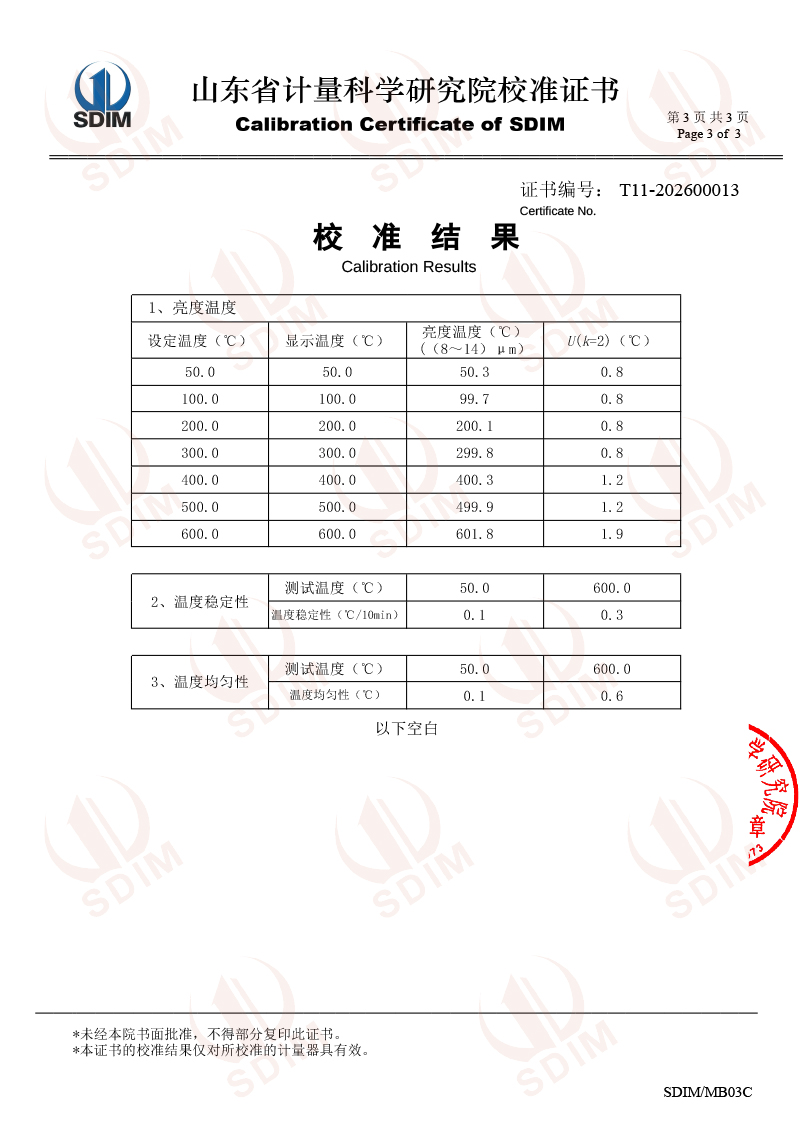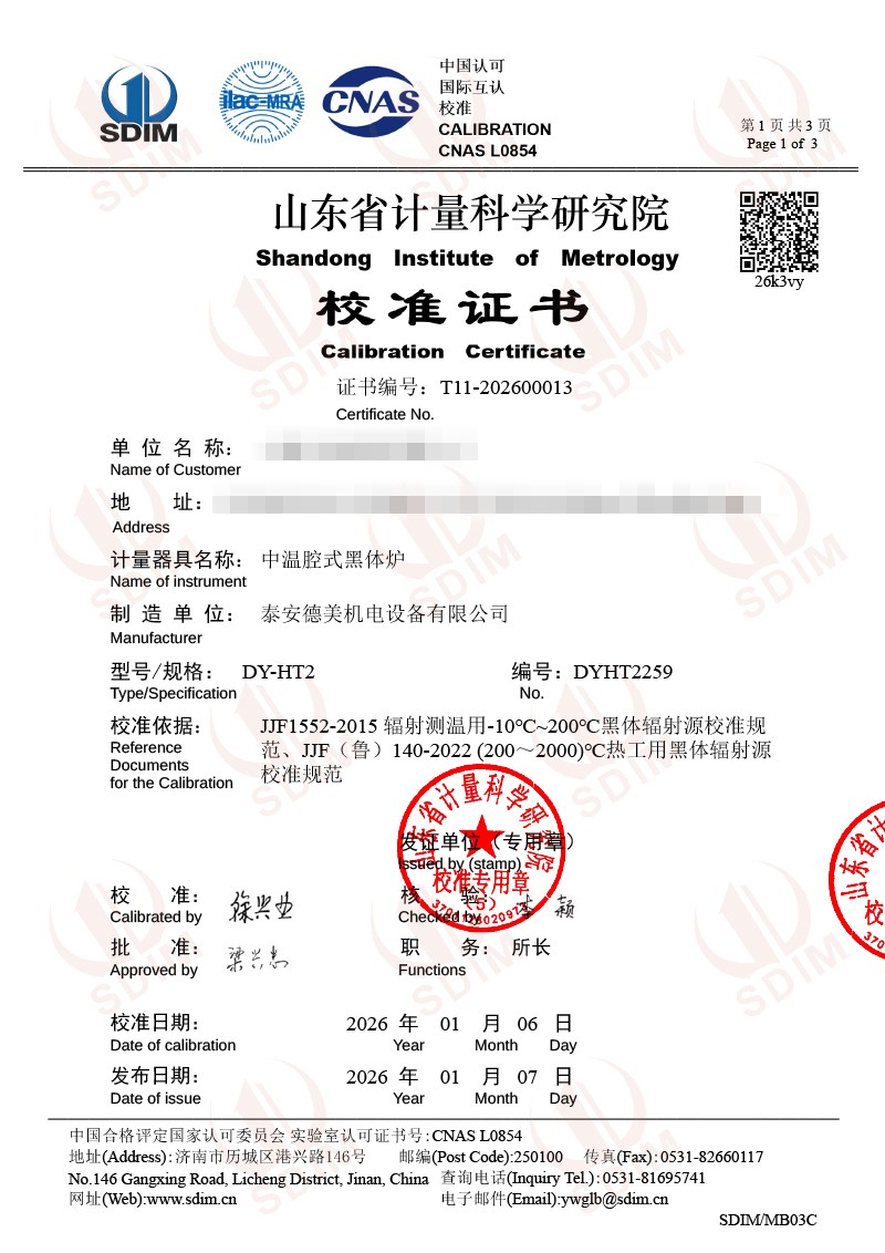 中溫腔式黑體校準(zhǔn)證書 2026-1-8 本文被閱讀 1045 次