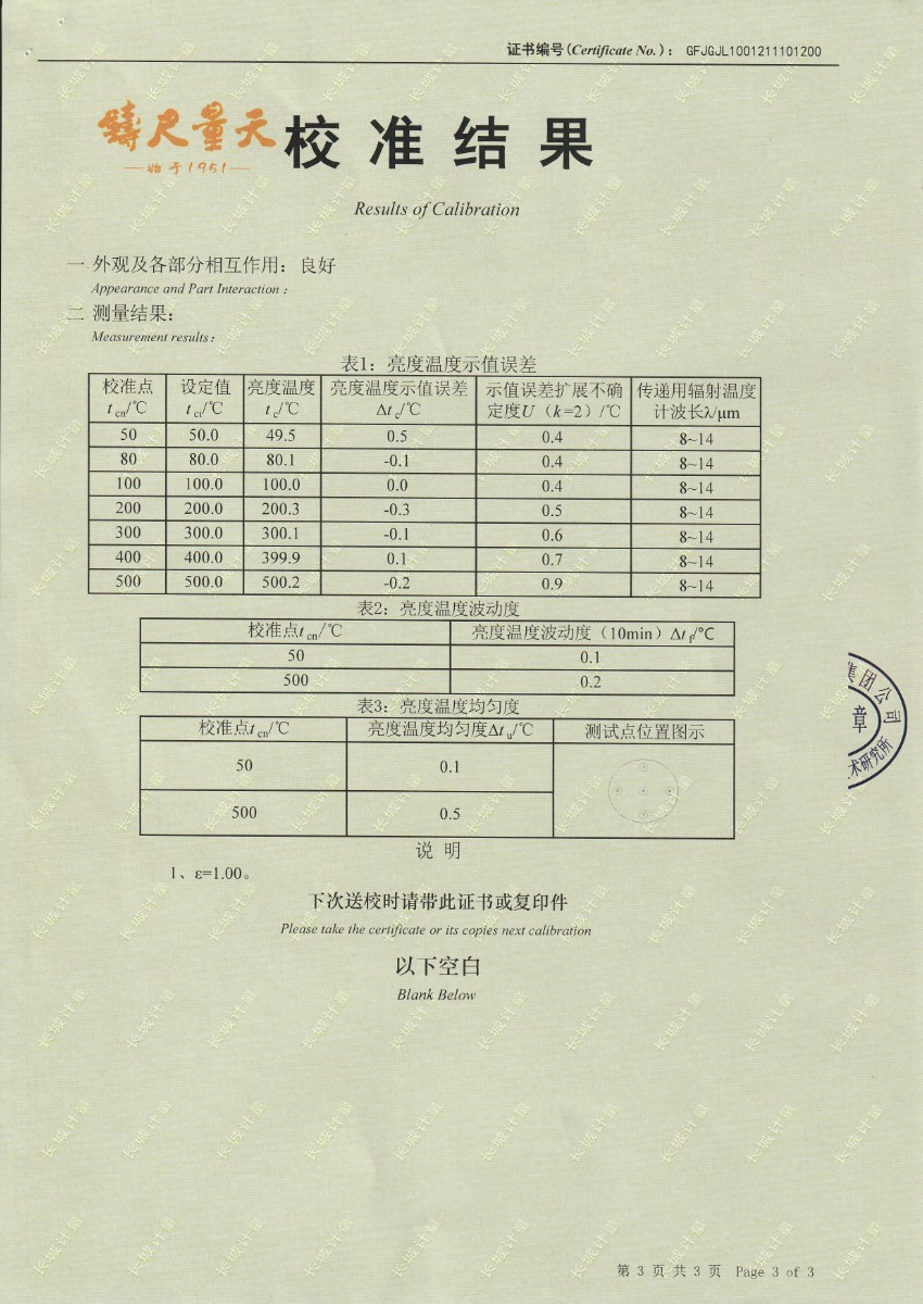| 上一條:河北華科質(zhì)檢技術(shù)服務(wù)有限公司-黑體輻射源(DY-HT3) | 下一條:中溫面源黑體爐-校準(zhǔn)證書(shū) |