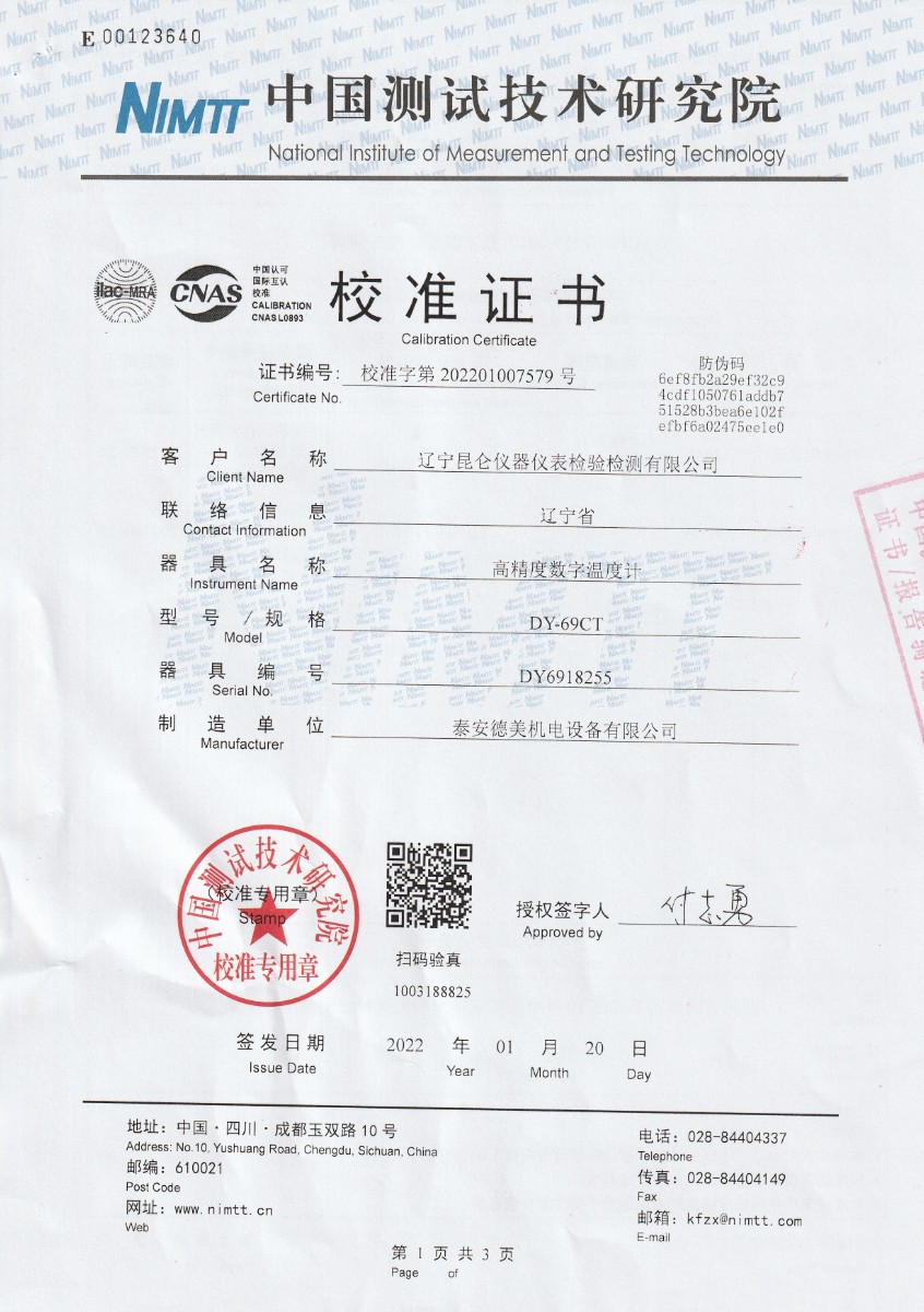 遼寧昆侖儀器儀表檢驗檢測有限公司-高精度數字溫度計 2022-2-15 本文被閱讀 14569 次