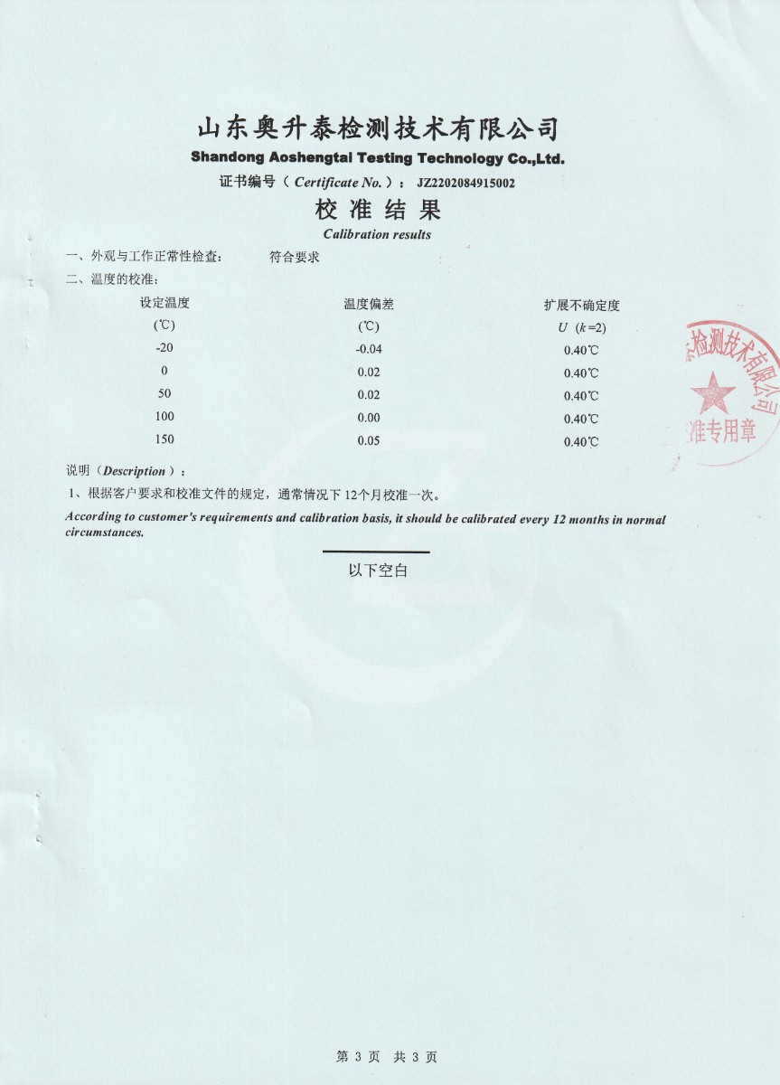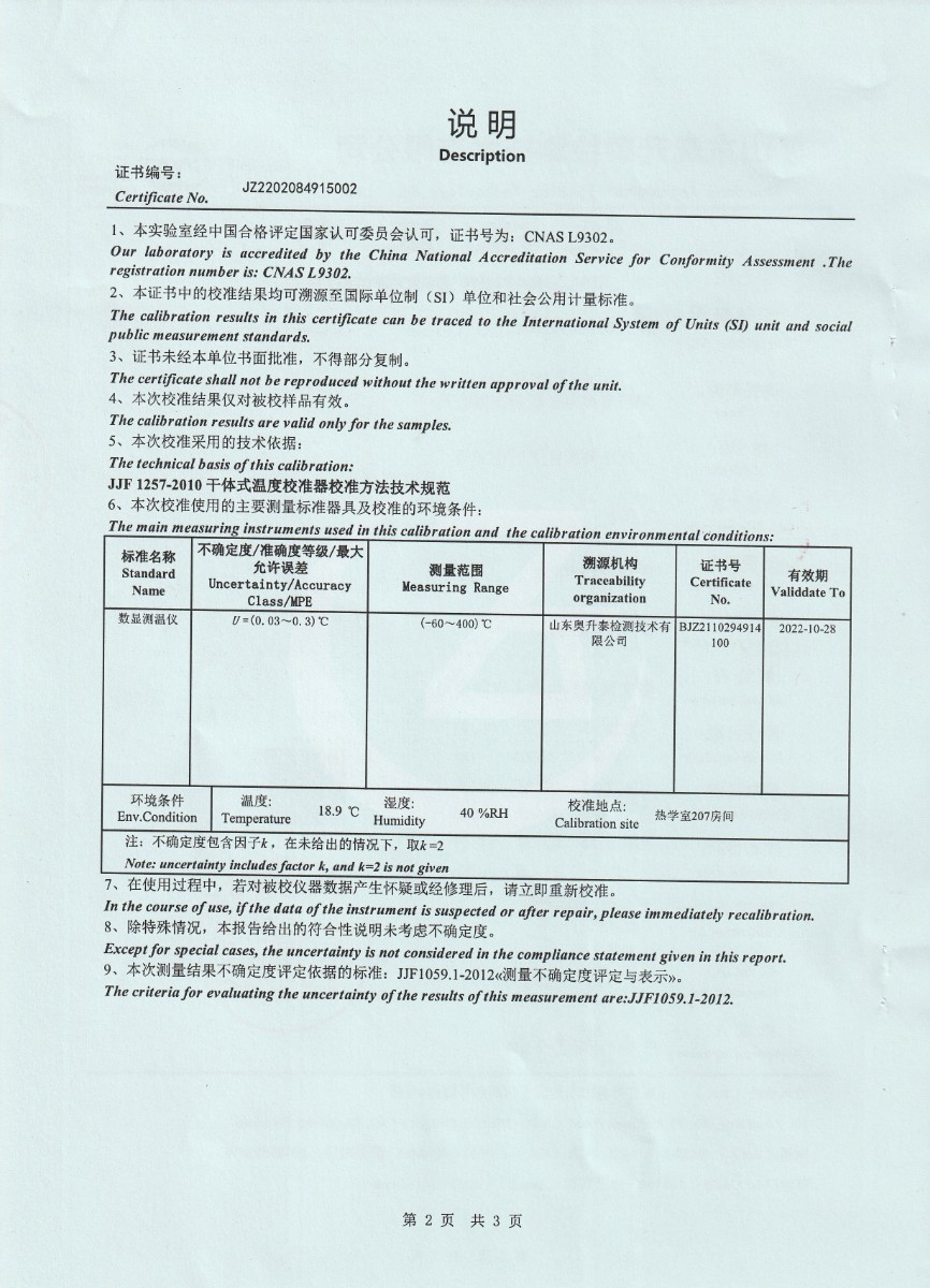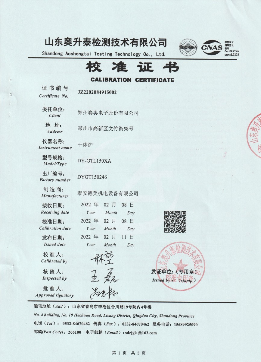 | 上一條:鄭州賽奧電子股份有限公司-干體爐DYGT150245 | 下一條:中溫面源黑體爐-校準(zhǔn)證書 |