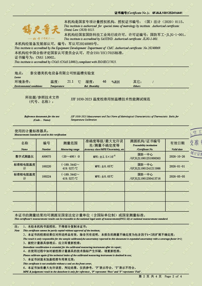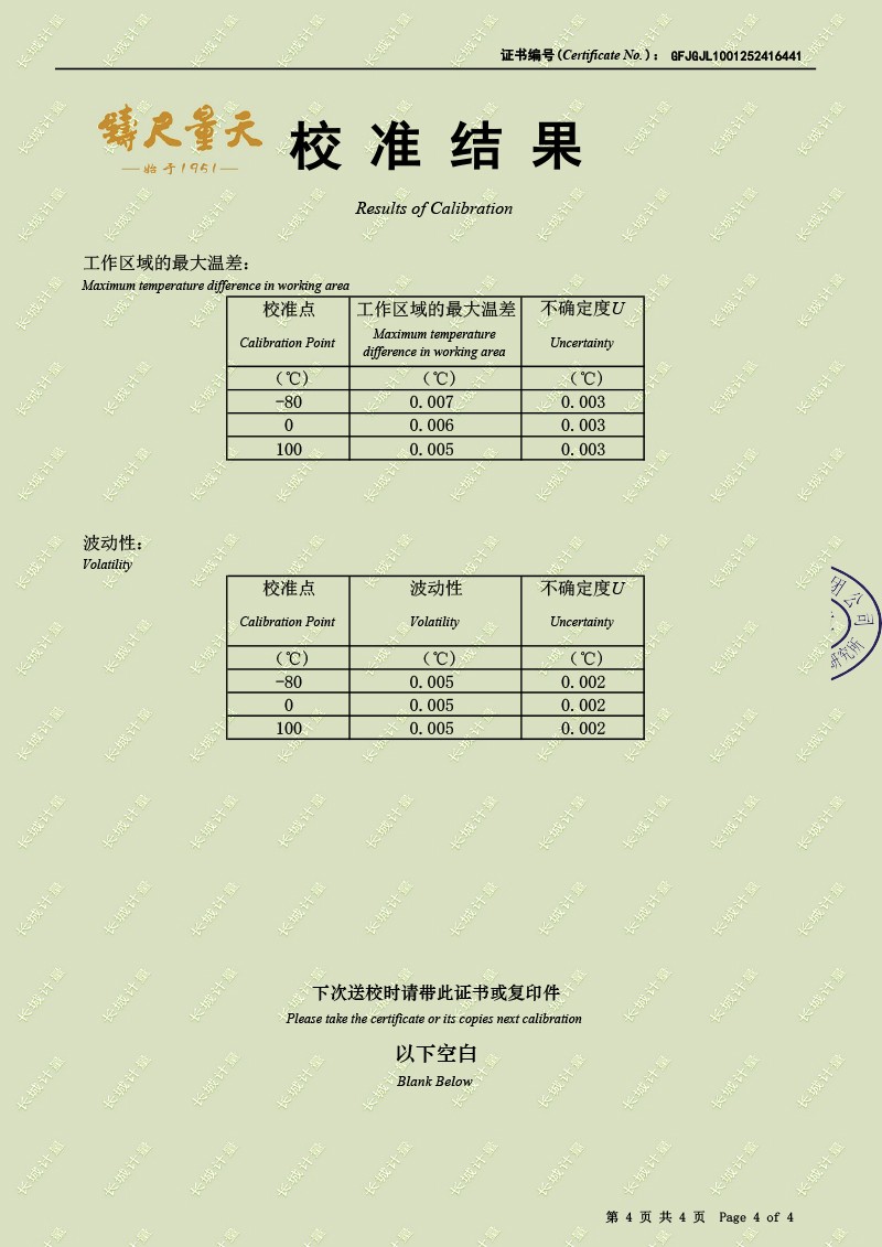 高精度制冷恒溫槽(-80~100℃)校準(zhǔn)證書(shū) 2025-12-19 本文被閱讀 10 次